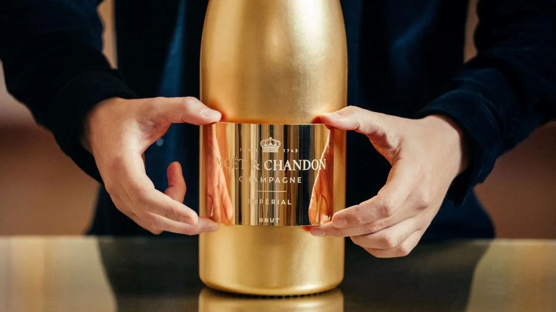 « Depuis 2022, la Maison Moët & Chandon met en lumière l’Artisanat d’Art français au travers de créations d’exception. Pour cette seconde édition, Anouchka Potdevin, Nicolas Pinon et Dimitry Hlinka ont uni leurs savoir-faire d’excellence pour donner vie à un Jéroboam de Moët Impérial, doré à la feuille d’or et orné d’une couronne de laurier.