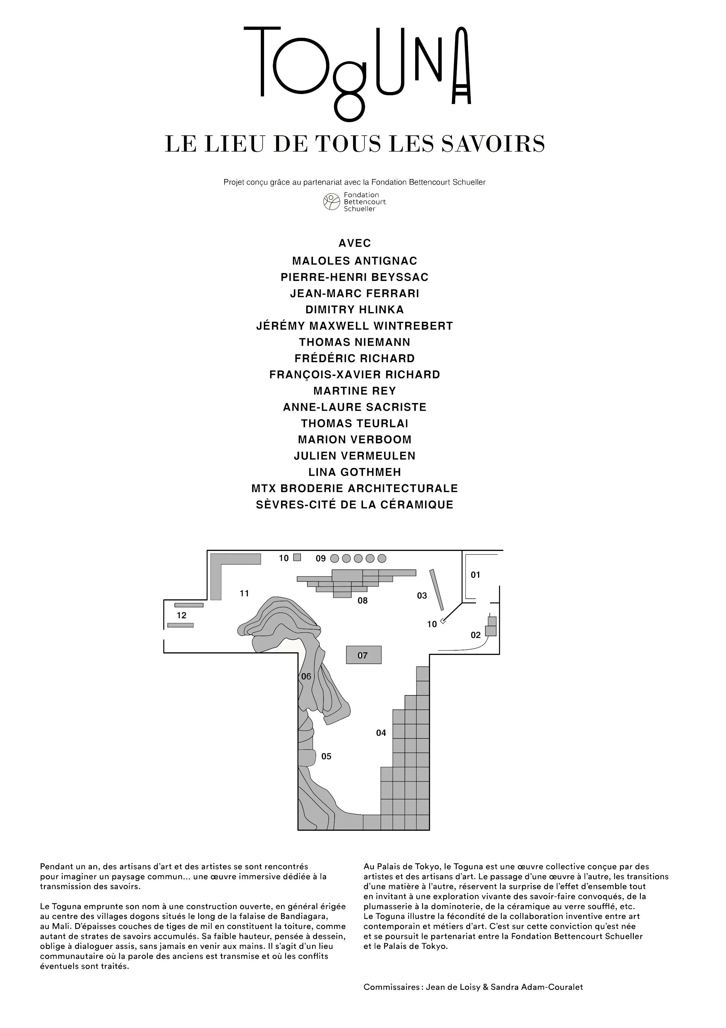 nspiré de l’architecture traditionnelle dogon du Mali, le projet Toguna transpose la symbolique d’un espace de dialogue et de transmission au sein du Palais de Tokyo. Pensé comme un paysage à arpenter, il propose une relecture contemporaine du lieu de parole en mêlant formes immersives, modularité et savoir-faire artisanaux.